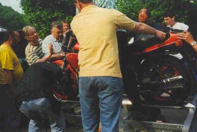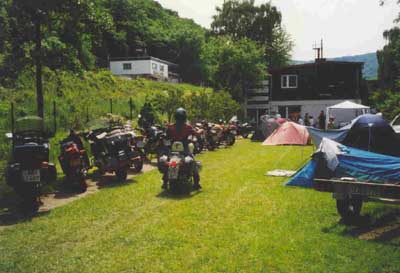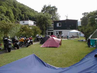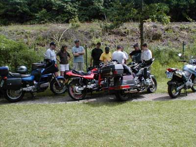 La réunion a commencé avec un événement triste : Sur le route, seulement peu de kilomètres de Obermaubach, Sylvain a cassé sa BMW (Mickys ancienne). Heureusement rien ne s'est passé à lui-même excepté quelques marques bleues, et après une nuit à l'hôpital il pouvait pousser encore à nous. La BMW devait toutefois retourner sur une remorque.
